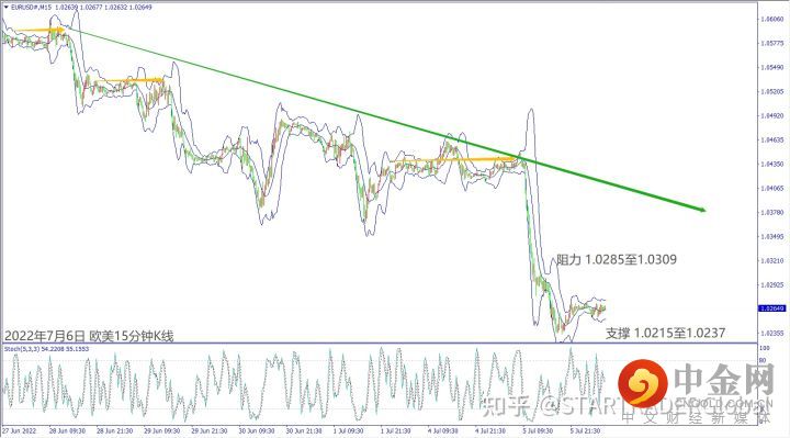 昨天(5日)瑞典和芬兰正式签署加入北约造成欧元暴跌,部分避险资金转向日元带动涨势,美日若跌破135.00关口,建议可短空操作。预期今天(6日)欧元区零售销售数据不佳,欧美一旦跌破小时布林带下轨线1.0251,建议可短空操作。欧美公布经济衰退避险资金可能部分流向澳元,预期美国公布经济数据利淡美元,澳美若突破小时布林带上轨线0.6818,建议可短多操作。