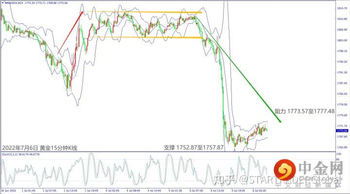 昨天(5日)瑞典和芬兰正式签署加入北约组织议定书,造成欧美股指大跌逾2%。晚间美国公布工厂数据利好,带动道琼斯和纳指皆涨超450点。两国加入北约恐造成欧洲经济陷入衰退,也让美油价格回落至106.00关口上方整理。晚间美国核谈判特使对解决伊朗核协议表示乐观,以及伊朗签署谅解备忘录,开发与伊拉克共享的油田,市场预期有望大增石油生产出口,造成美油价格扩大崩跌近12%,尾盘收在97.80美元。