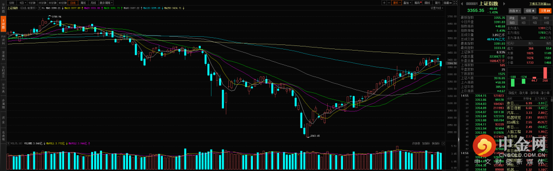 A股周三出现回调,除科创50指数逆势上涨0.99%,沪指最低跌至3333点,逼近20日线,最终下跌-1.43%,创指回调-0.79%。两市成交接近1.1万亿,北上资金小幅净卖出。