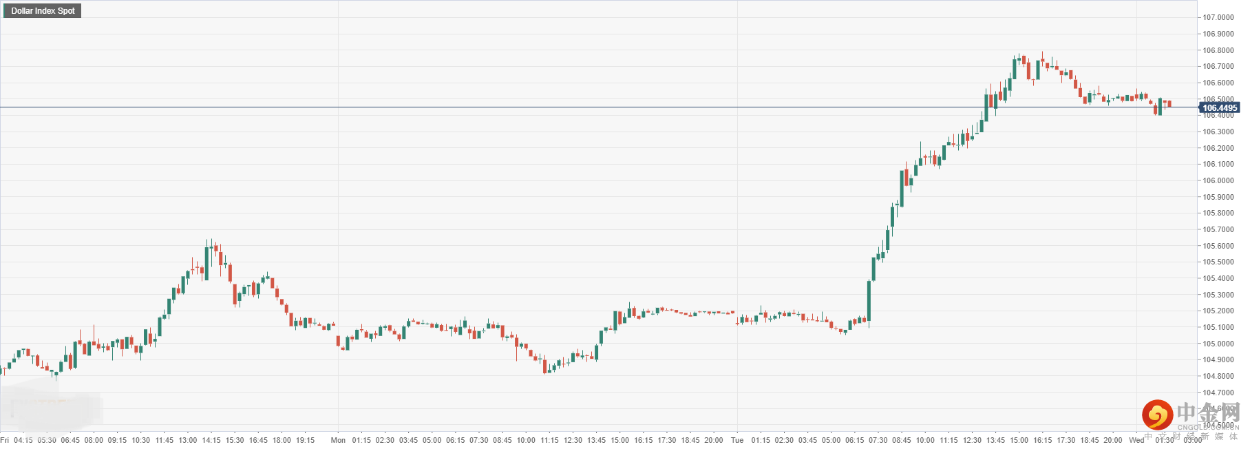 美元指数周二盘中大幅冲高后,今日开盘涨至106.44附近,由于市场仍对经济衰退担忧加剧,促使市场大量涌入避险资产,使得美元上行支撑提振。