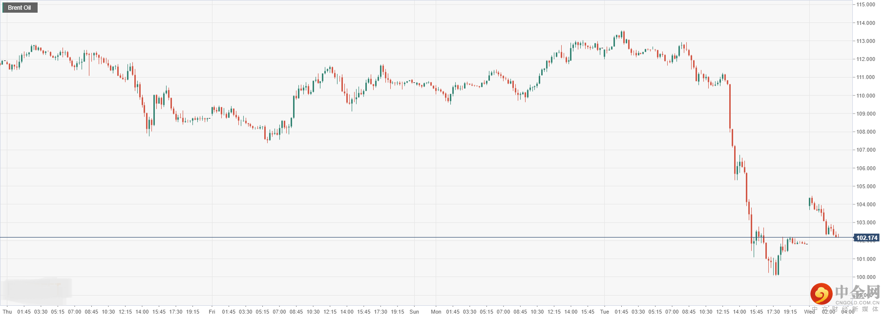 § 原油方面:布伦特原油下跌至102.17。