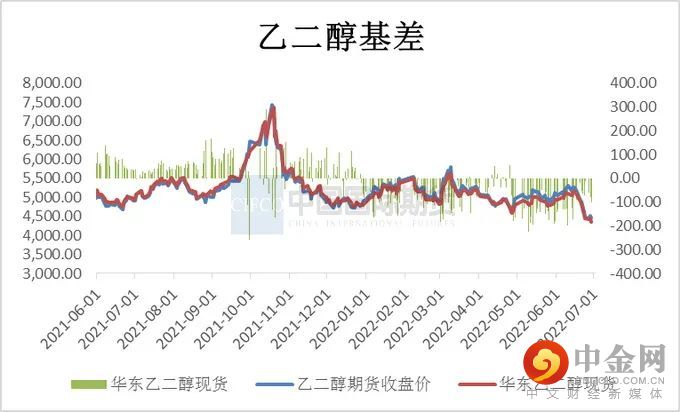 由于乙二醇整体供需格局明显过剩,市场内可流转现货充裕,现货基差保持偏弱运行。