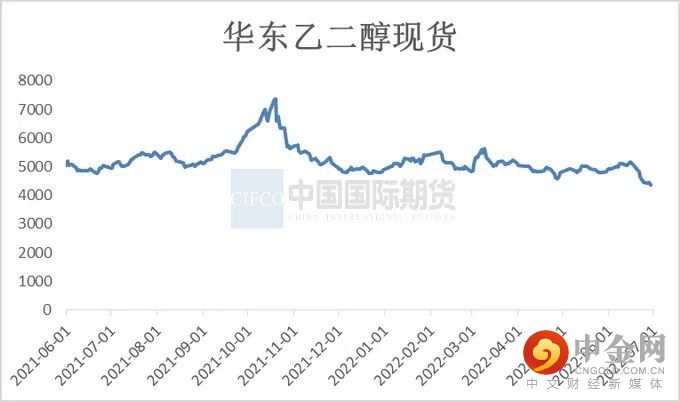 中下旬以来,终端织造行业订单不及往年同期水平,需求持续弱势传导,聚酯工厂生产也进入传统淡季,弱需求导致乙二醇港口库存居高不下,叠加原油成本端支撑力度开始减弱,宏观情绪转弱,月底聚酯大厂自律减产,乙二醇现货价格承压下跌。
