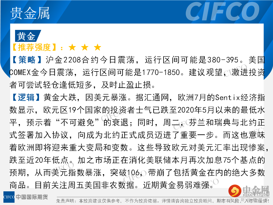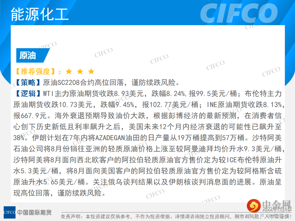 中期早知道 | 大宗商品普跌 做好风险控制
