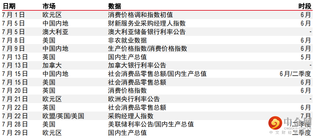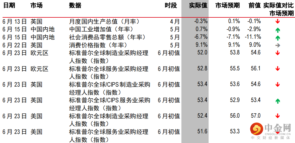 ↑ 高于预期——实际值高于市场预期,↓ 低于预期——实际值低于市场预期,→ 实际值符合市场预期