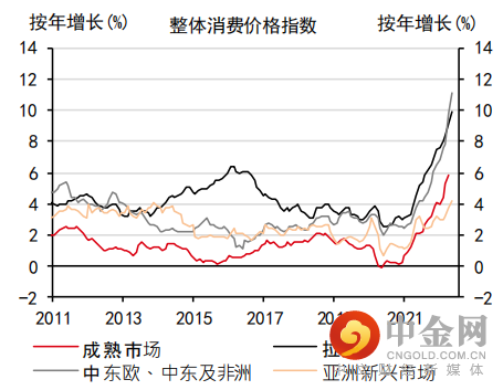 俄乌局势的影响继续恶化。能源、金属和食品等商品价格均接近历史高点。新兴经济体受影响最严重,食品在消费价格指数篮子中所占比重通常在20-30%或以上,而食品价格涨幅已达到两位数(图3)。同时新冠肺炎疫情也在造成持续影响,不仅在坚持动态清零政策的中国内地,而且在澳大利亚等发达经济体,旷工率达到新高。