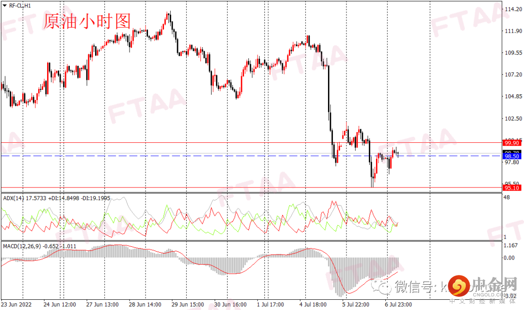 原油周三延续下跌,最高102.11,最低95.13,日图收出长下影中阴,显示短期空头继续主导,日图级别或延续偏空。消息面,美国及其盟友讨论将俄石油降至40-60美元/吨,此外通胀预期继续压制大宗价格。油价在昨日亚欧盘震荡后,美盘时段再度跳水,随后回弹,当前小时图指标有底背离迹象,今早亚盘油价小幅反弹。考虑到日图级别偏空,操作上可持有空单,或现价附近轻仓空,止损99.90,目标95.10。