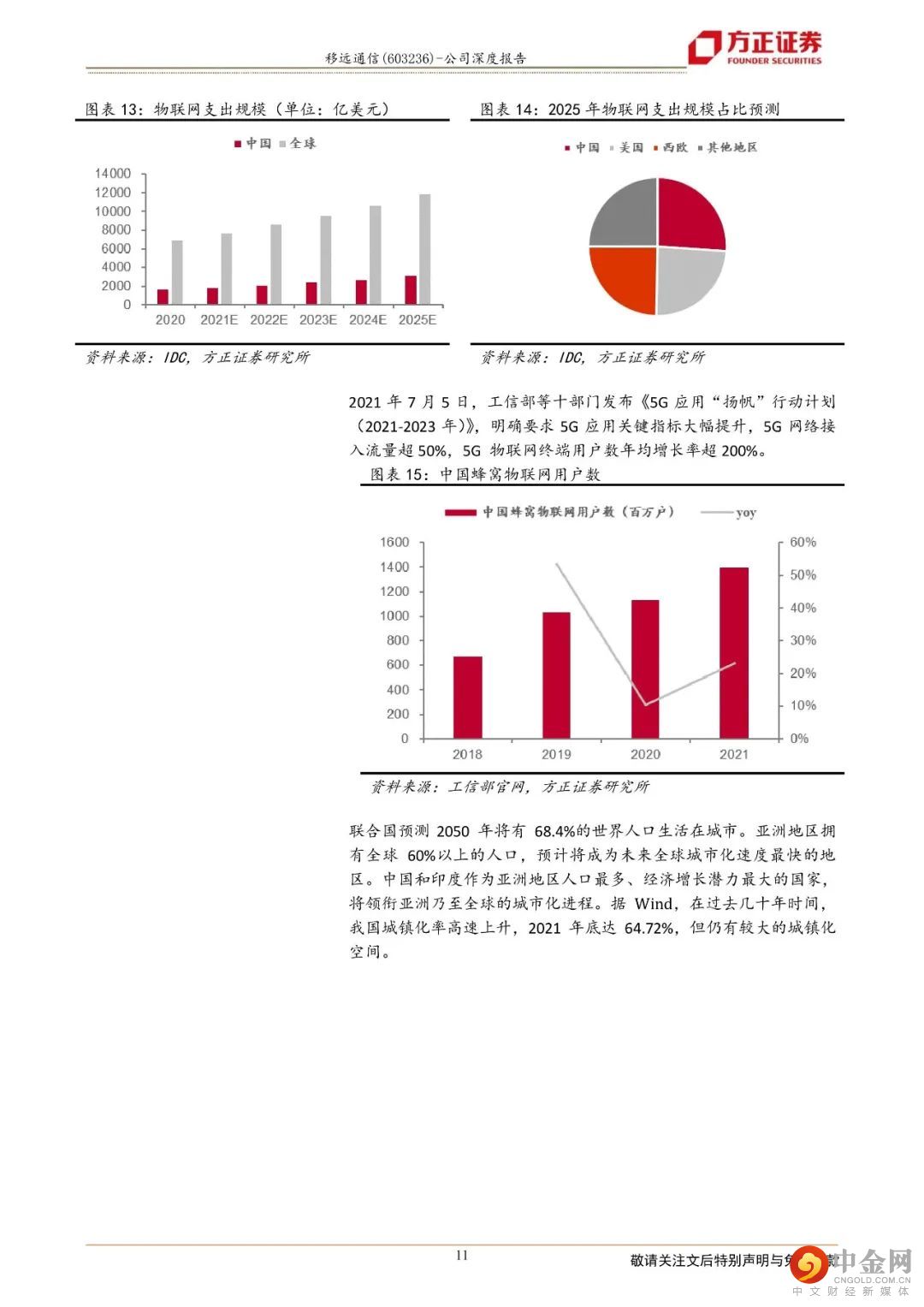 1)5G发牌后进入中周期,物联网迎来高速增长期:5G建设稳步推进。截止2021年底,我国5G基站建成并开通142.5万个,占全球60%以上。物联网网络层连接技术不断发展,基于5G通信技术与垂直行业融合的物联网应用不断拓展,将迎来高速增长期。据Counterpoint Research预测,到2030年,全球蜂窝物联网模组出货量将超过12亿,CAGR达12%, 5G物联网将成为增长最快的应用场景。