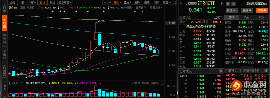 相比较近期新能源的风头正盛,上个月出尽风头的券商在近期陷入了沉默,没有了当初一度要引领市场迈入牛市的气势,反而成了拖后腿的。从近期券商ETF的走势来看,基本上是被五日线牢牢压制住。