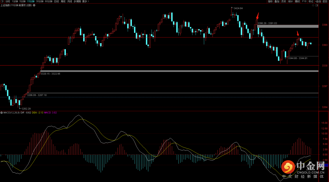大盘早盘顺势向下在3331附近遇到支撑后形成五分钟背驰段出现反弹,短期需要关注3378点是否能够突破如果无法突破的话反弹空间相对有限,而一旦突破就需要关注上方的反转压制3404是否能够站上。关注周五的量能,如果量能无法超越上周的量能则短期将出周线转折点。届时会在修复反弹后再次转身回落。