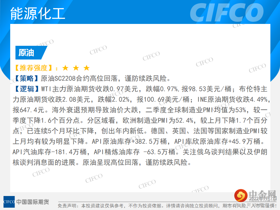 中期早知道 | 能化顺畅下跌 工业品承压偏弱