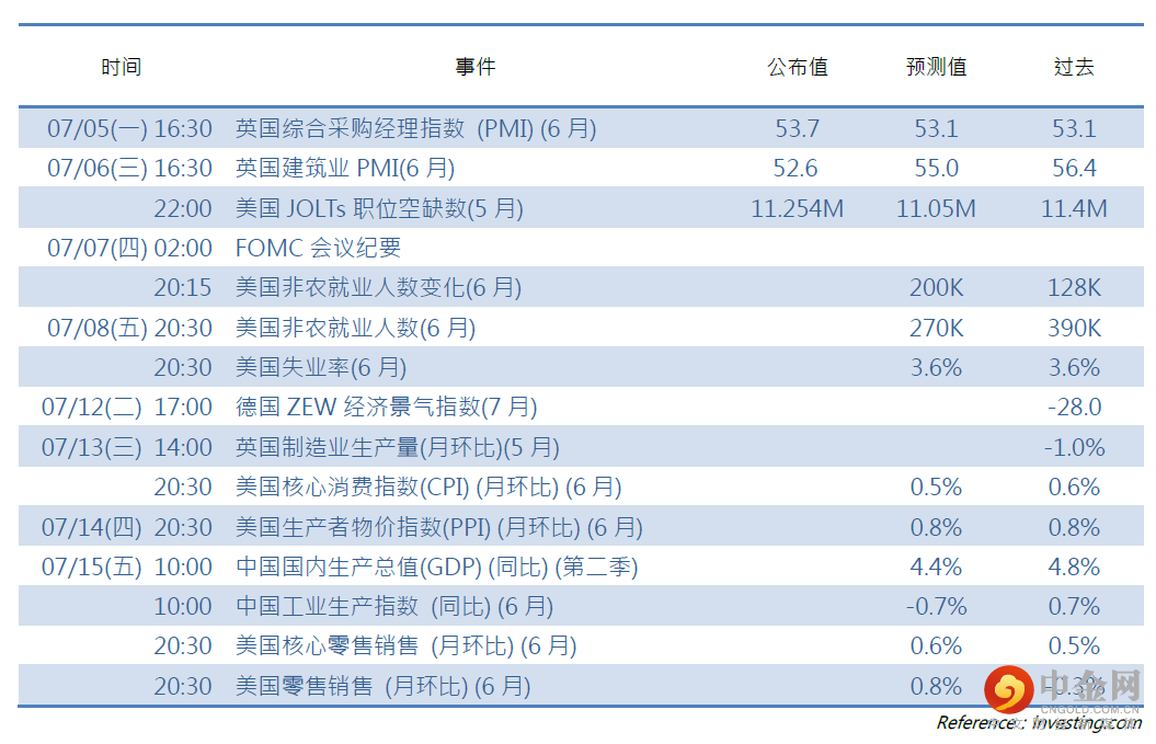美国6月ISM服务业指数降至两年多新低,价格支付指数仍高达80.1。5月JOLTS职位空缺数再创疫情以来最大单月跌幅。美国按揭贷款总需求较前一周下降5.4%,6月曼哈顿公寓销售合同锐减三成,均显示楼市降温。