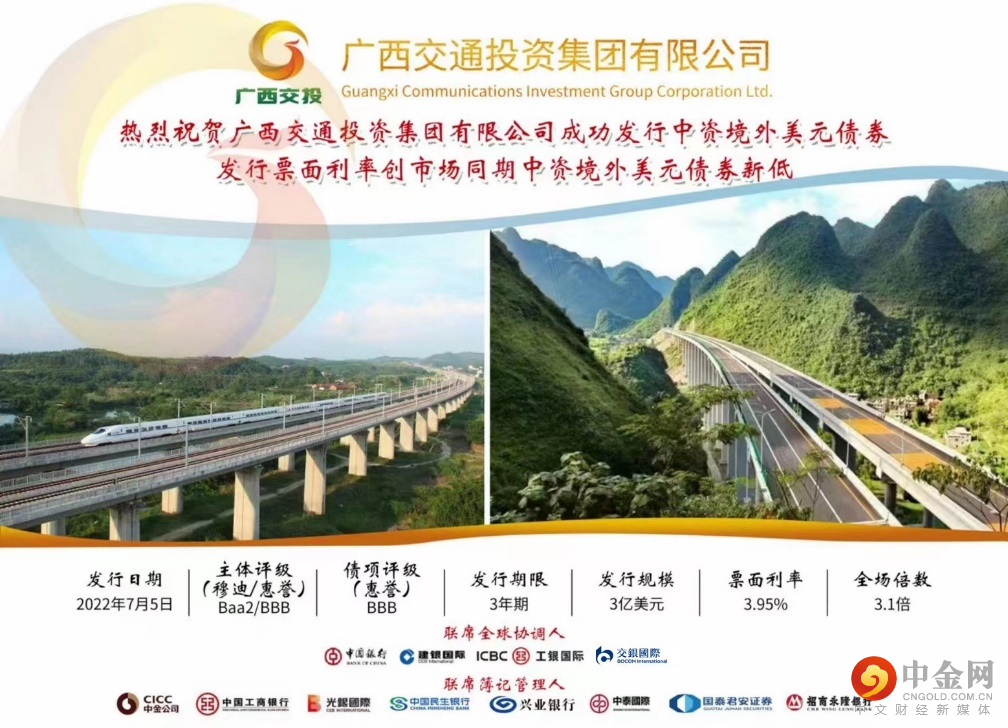 7月5日,交银国际作为联席全球协调人协助广西交通投资集团有限公司成功发行3年期3亿美元高级债券,票面利率3.95%,利率创市场同期中资境外城投债券新低。
