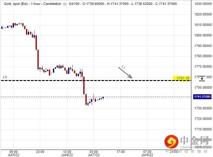 可以部署在$1,757美元左右建立淡仓盘,短线看淡金价一线至$1,726美元水平后止赚,止损在$1,765美元。