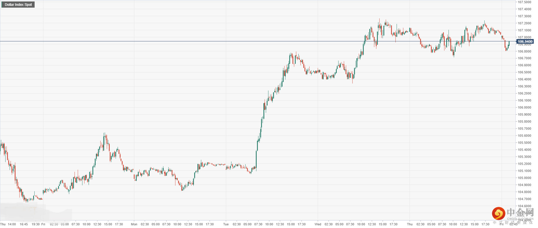 美元指数周四收盘涨跌起伏震荡后,今日开盘盘整在106.94附近,由于在美国非农就业公布前,美元有所震荡下行疲软。