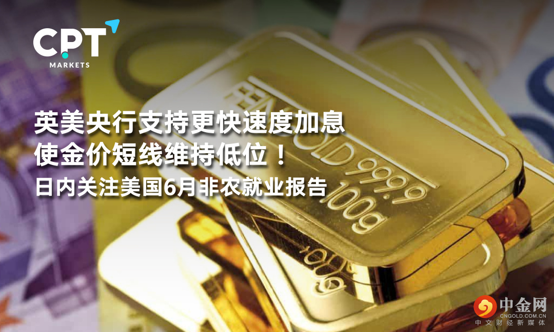 总而言之,金价受英美央行皆支持更快速度加息及美股全数收高而维持在低位,不过美国数据普遍利差及市场预计6月非农数据不会特别靓丽,限制了金价的跌势;日内重点将关注美国6月非农就业报告。