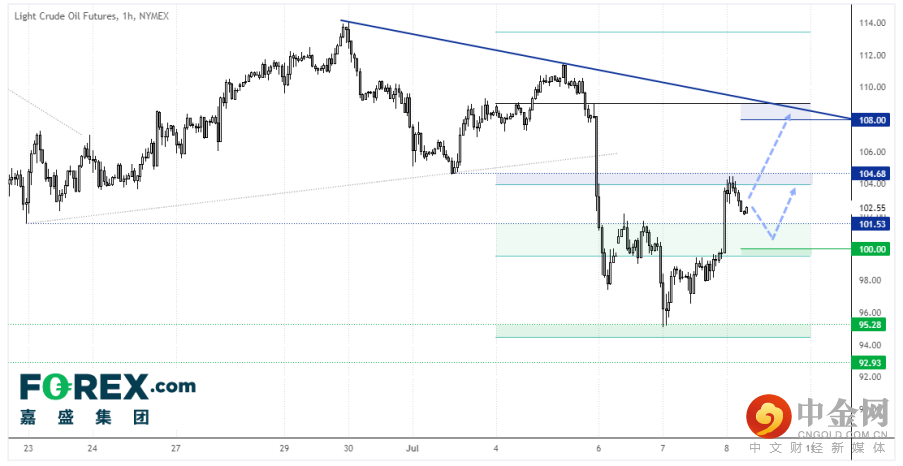西得州原油构筑看涨吞噬K线,确认了95.28为关键支撑位。油价修正了昨天走势,轻松收于100上方。守住该支撑区域继续看涨,101.50可能同样构成支撑。站上104.70,上看重点阻力108。