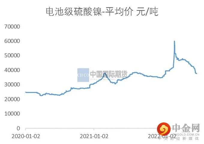 图2-13:SMM电池级硫酸镍平均价:硫酸镍价格回落