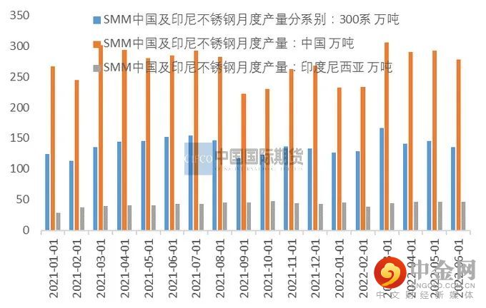 图3-17:不锈钢中国及印尼月度产量 单位:万吨