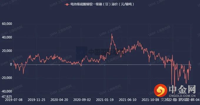 图2-14:硫酸镍-镍豆溢价:仍旧在倒挂区间