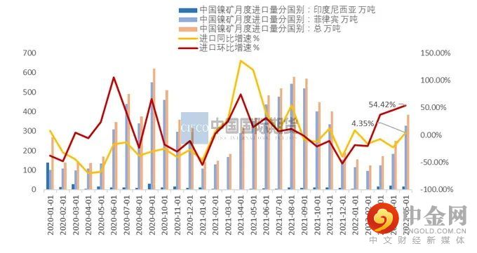 图1-1:5月菲律宾镍矿累计进口量环比增加78.27%,镍矿进口量整体同比增加4.35%