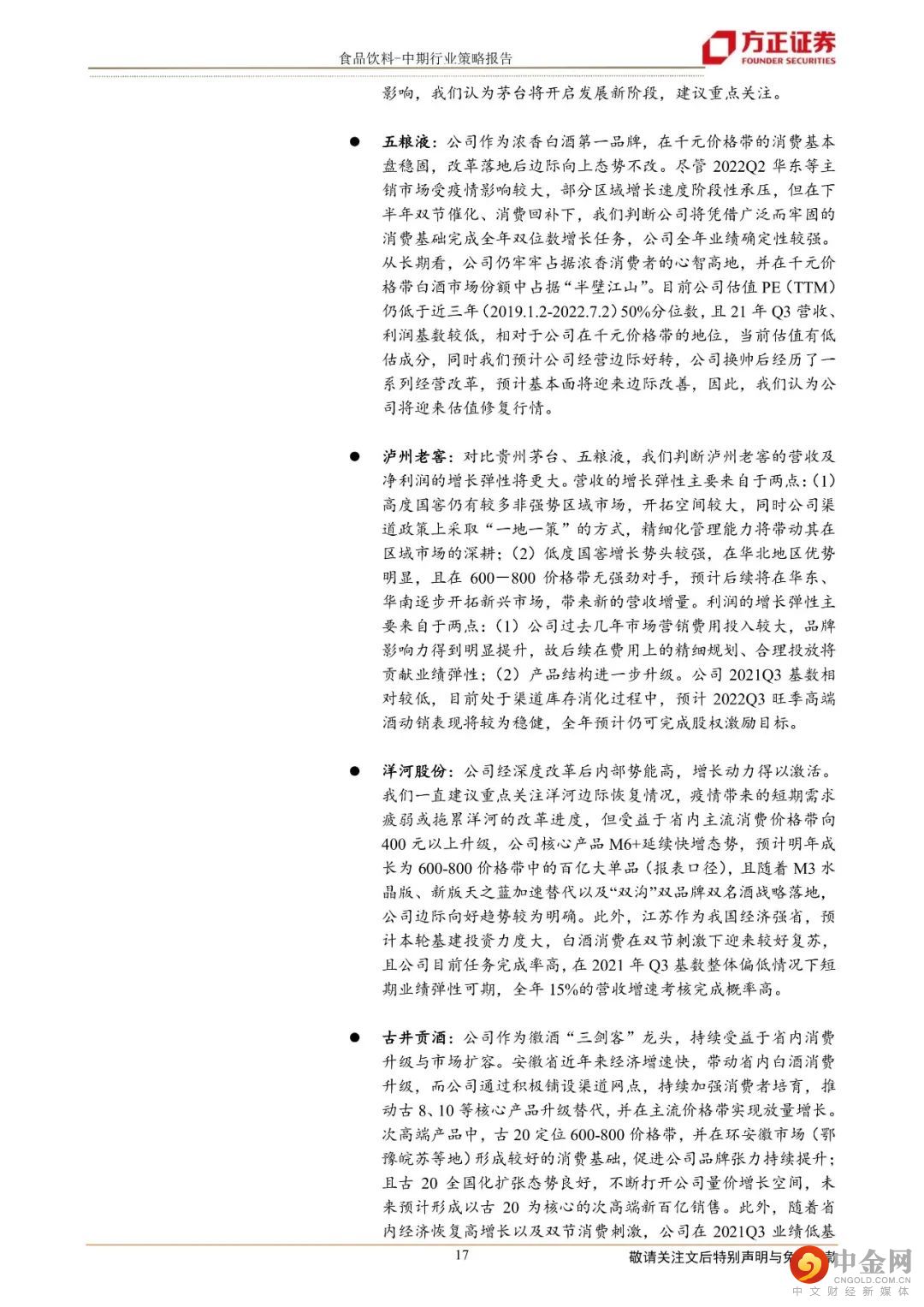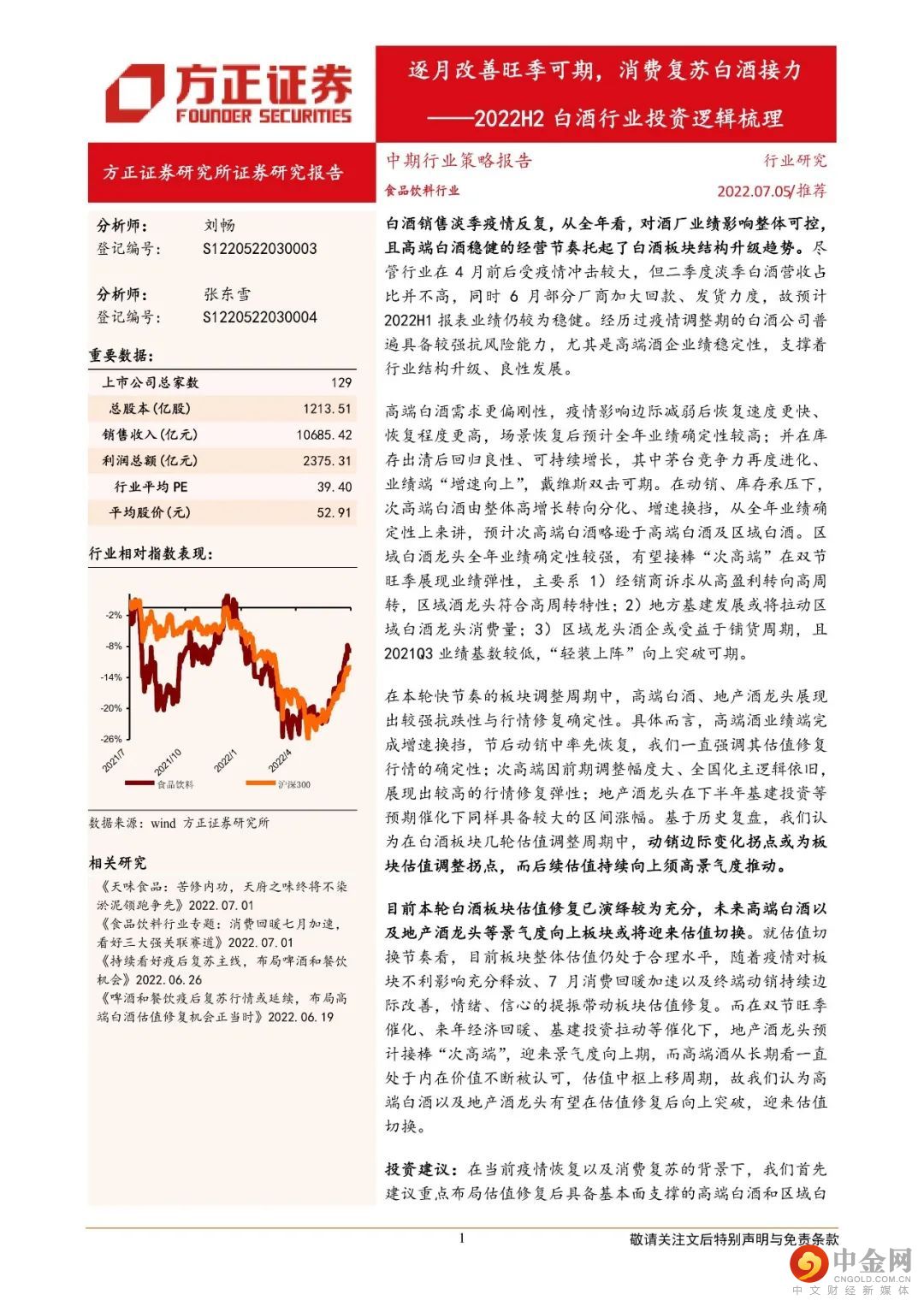本文来自方正证券研究所于2022年7月6日发布的报告《白酒中期策略:逐月改善旺季可期,消费复苏白酒接力》。