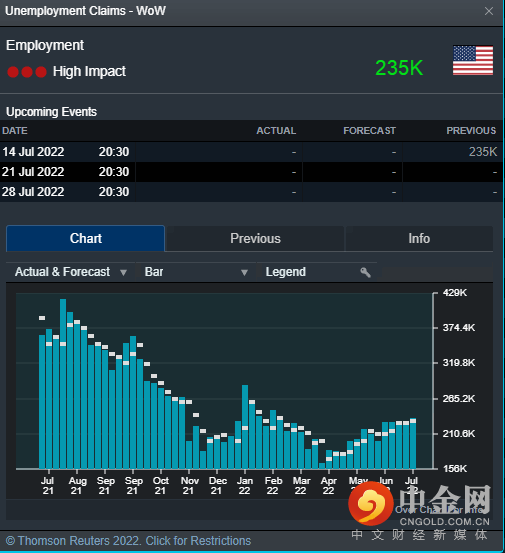 市场的参与者将密切关注该就业报告是否出现任何经济放缓的迹象,从美国当周初请失业金的趋势来看,自4月以来呈现上升趋势。