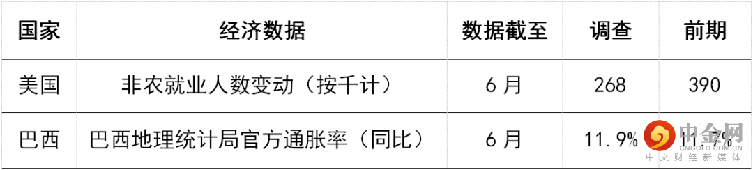 今日公布的经济数据 (2022年7月8日)