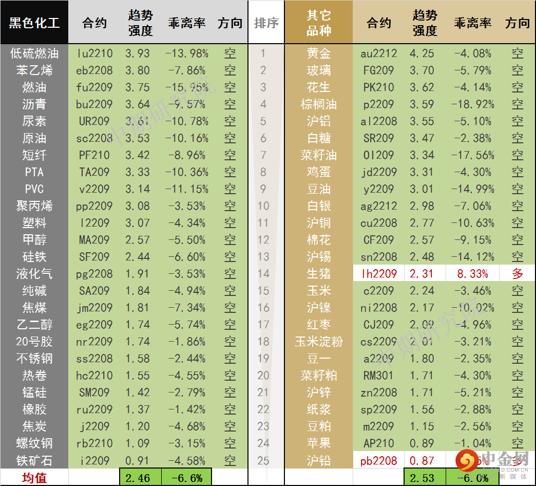 中期商品趋势榜 | 燃料油空头动能强(0707)