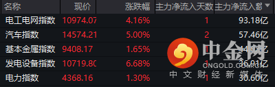 【盘面热点与亮点】据wind主题行业看,电工电网指数、汽车指数、基础金属指数、发电设备指数、电力指数等主力净流入额排名靠前。其中汽车指数出现两个净流入天数。