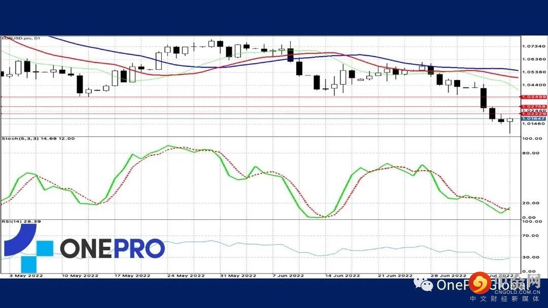 欧元区的日线技术线图中,Alligator死亡交叉除此之外,KD处于低档钝化的格局,在长线与短线都是偏向空方的状况下,投资人尽量要偏空看待行情,尽量不要有猜底的行为。