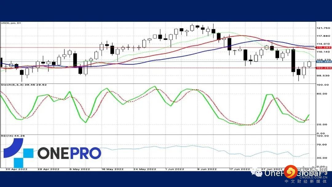 原油的日线技术线图中,Alligator死亡交叉,表示长线的原油依旧看跌,不过短线的KD形成黄金交叉,表示短视买方的力道比较强势,因为连续的过高,所以现阶段原油持续挑战前波高点的机率很高。