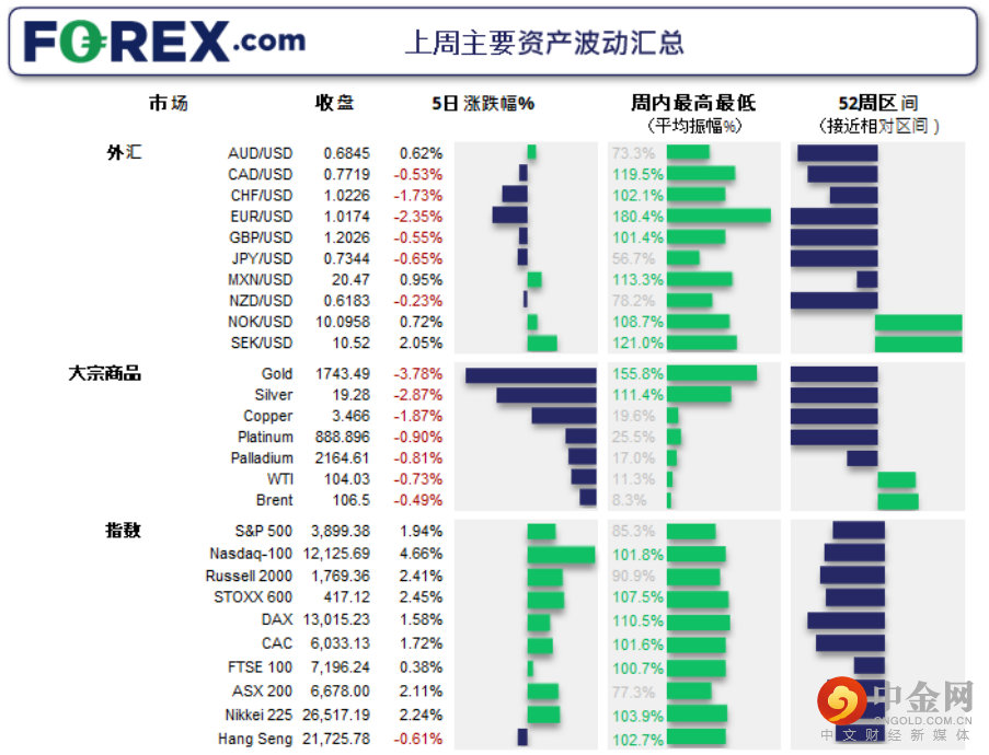 铜价跌至20个月低点。铜价因全球经济衰退的担忧而承压下挫,但在周图形成了看涨锤子形态,暗示可能正在筑底。