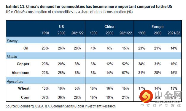 “当前的宏观需求结构是与2008年截然不同,当时外生信贷和去杠杆危机导致需求急剧下滑。而现在美国在全球大宗商品市场上所占的份额现在远低于历史水平,新兴市场的需求份额规模要大得多。”