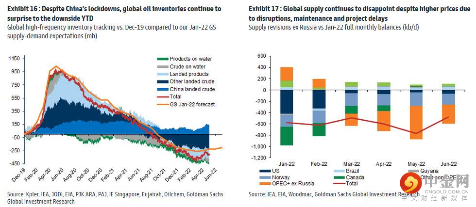 在高盛看来,原油的下跌已经过头了,尽管未来经济衰退的风险正在增加,但“目前的原油赤字仍未得到解决,高价格导致需求破坏是唯一的解决方案,因为库存仍在下降”。