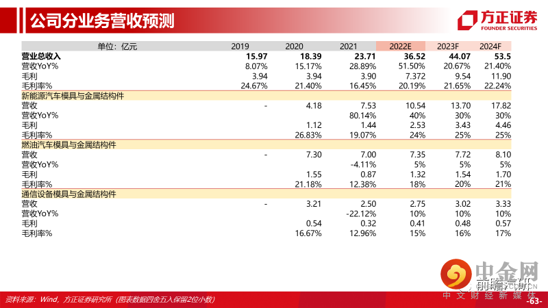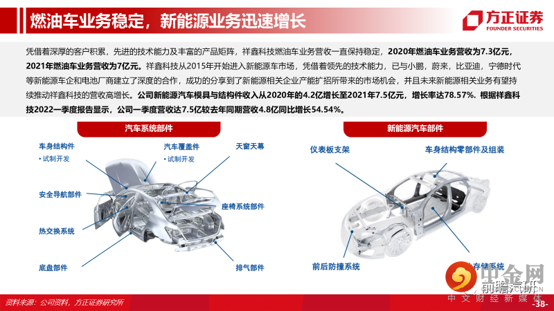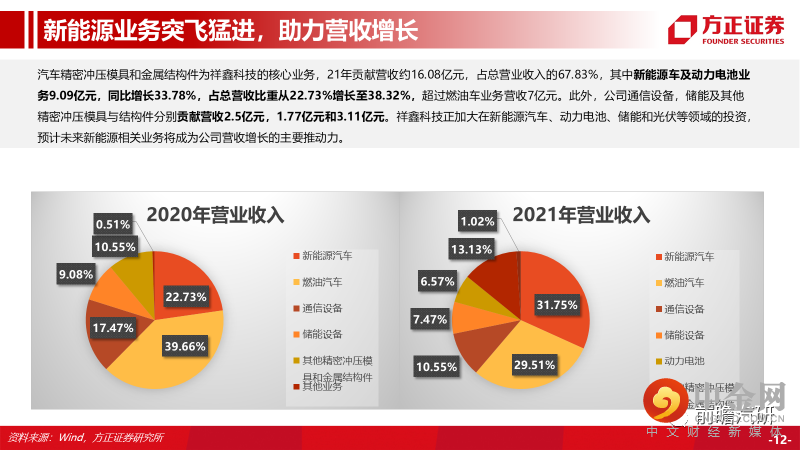 公司已深耕汽车结构件行业多年,积累了丰富的客户资源,其产品已进入丰田,大众,广汽,吉利,蔚来,小鹏,比亚迪等一众知名整车厂商。2020年与2021年,公司燃油车业务收入分别为7.3亿与7亿元,基本保持稳定。新能源汽车业务方面,得益于大趋势上我国新能车渗透率大幅提升,加之公司在新能源车轻量化制造工艺上的技术储备与公司强大的客户资源储备与拓展能力,其新能源汽车业务收入增长迅猛,收入从2020年的4.2亿增长至2021年7.5亿元,增长率达78.57%。