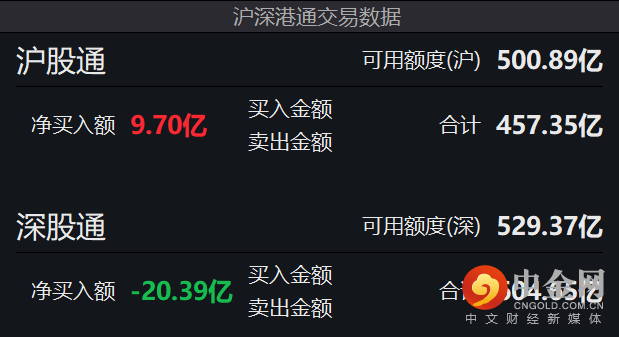 北向资金全日净卖出10.68亿元,结束连续2个交易日净买入。其中,沪股通净买入9.70亿元,深股通净卖出20.39亿元;南向资金全日净卖出港股22.24亿港元。