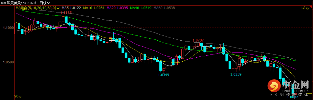 7月11日,美元指数盘中一度升至108.26,触及近20年新高。欧元兑美元一度跌至1.0032,续创2002年以来新低,因能源供应问题和经济衰退风险对欧元区前景构成压力,与此同时避险情绪推动美元普遍上涨。