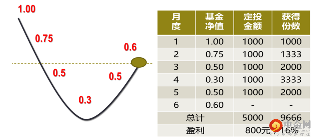 每个月在固定的一天,投资固定的金额在某一金融工具上,藉“平均成本法则”,逢低多买、逢高少买,同时达到投资与储蓄的目的。