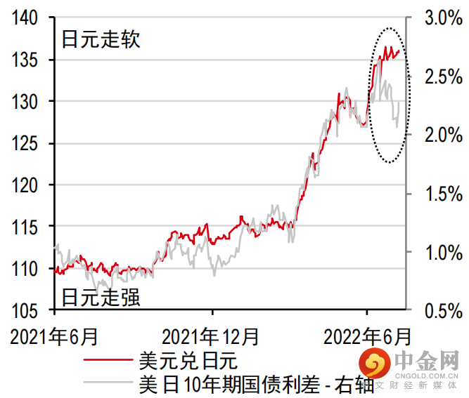1.美元兑日元与美日10年期国债利差的相关性最近破裂