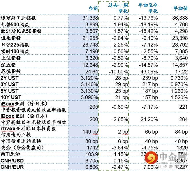 继美国6月ISM制造业指数跌至两年低点之后,上周公布的美国服务业指标也降至两年最低,宏观数据显示美国经济持续疲软,市场情绪不断转弱。同时,上周公布的美联储6月会议纪要显示,通胀压力持续升高下,利率可能升至“更具限制性”的水平,货币市场预测本月将加息75个基点。国际局势方面,高通胀压力与经济衰退担忧在全球蔓延,各国央行陆续发起20年来最大规模加息潮。