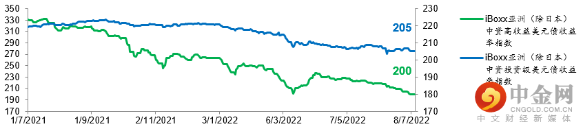 iBoxx亚洲(除日本)中资美元债收益率指数过往一年的走势
