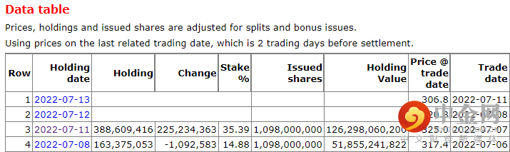 港交所CCASS数据显示,7月11日,比亚迪H股22523.44万股被转让给花旗银行,花旗银行席位的比亚迪H股数量增加2.25亿股至3.886亿股,占比35.39%。由于巴菲特恰好持有2.25亿股比亚迪H股,市场便猜测这些股份或来自巴菲特旗下的伯克希尔-哈撒韦公司(下称“伯克希尔”)。
