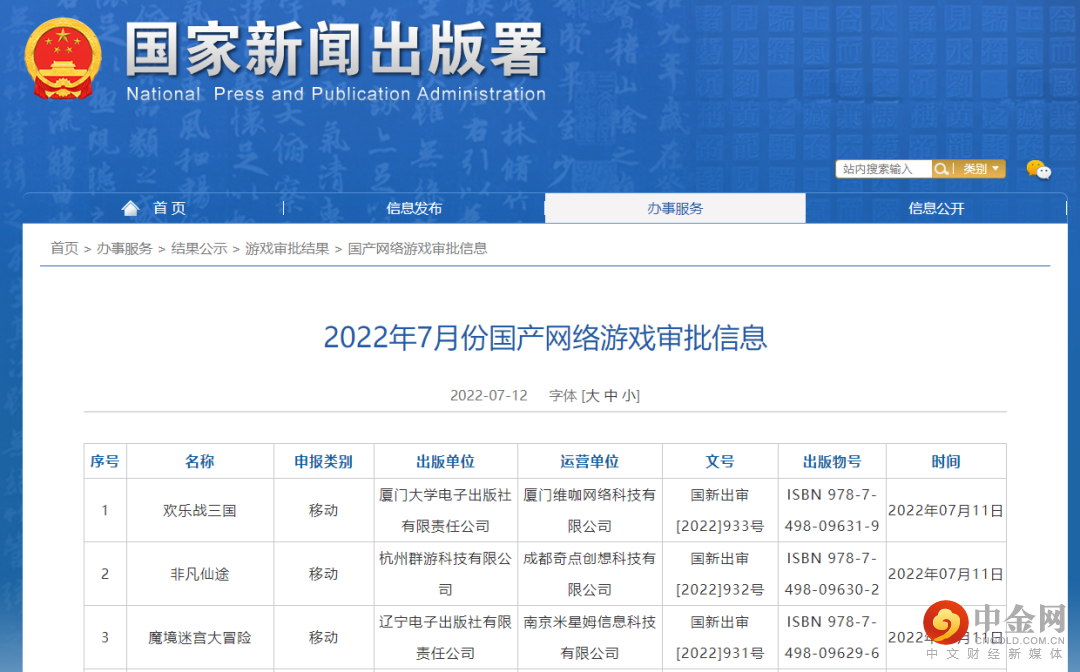 2.2常态化?7月份网络游戏审批信息公布