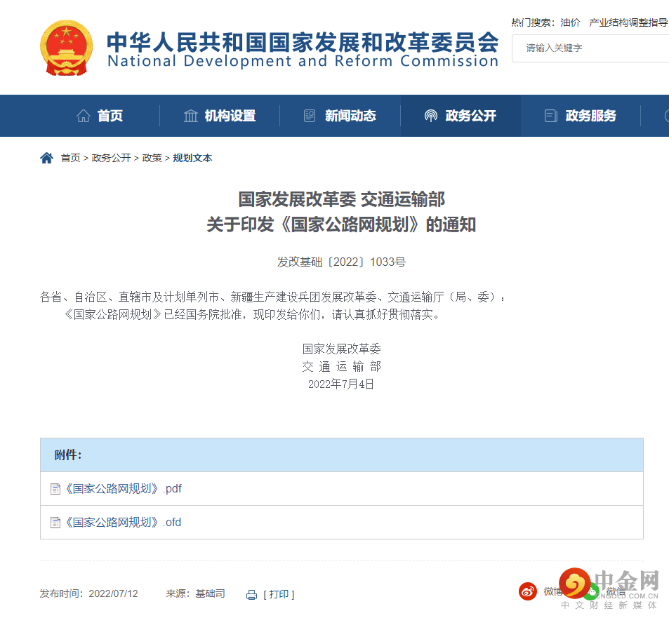 7月12日据发改委官网消息,发改委在印发的《国家公路网规划》中提出,到2035年,基本建成覆盖广泛、功能完备、集约高效、绿色智能、安全可靠的现代化高质量国家公路网,形成多中心网络化路网格局,实现国际省际互联互通、城市群间多路连通、城市群城际便捷畅通、地级城市高速畅达、县级节点全面覆盖、沿边沿海公路连续贯通。