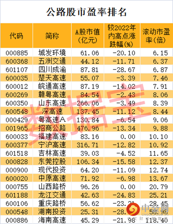 根据数据宝统计,截至7月12日收盘,近半数公路股滚动市盈率不足10倍,如城发环境、五洲交通、四川成渝、楚天高速、赣粤高速等。最新收盘价与年内高点相比,四川成渝、湖南投资、龙江交通、重庆路桥、海南高速、城发环境6股回撤幅度超过20%,四川成渝回撤幅度28.67%居首。