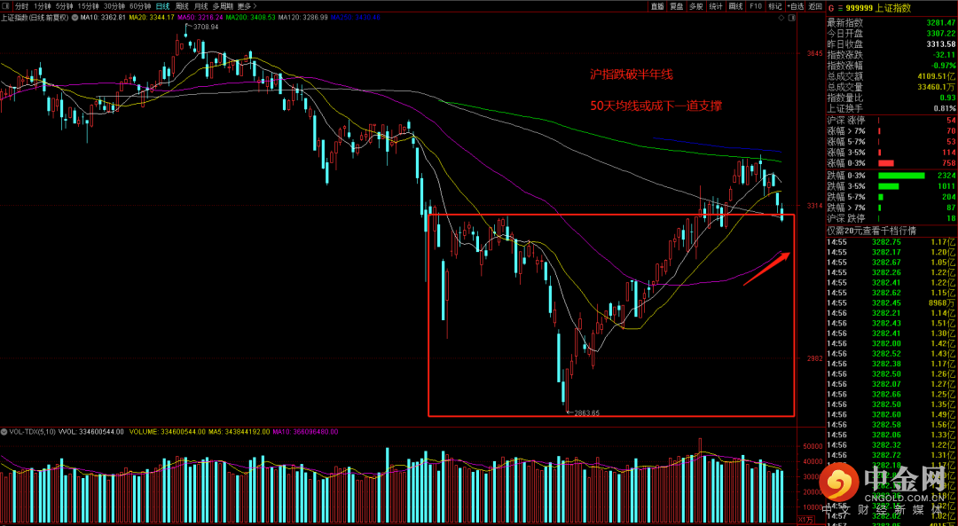 【技术分析】沪深两市昨日全线大跌,沪指再度失守3300整数关口,同时也失守了半年线位置,目前位置也是本轮反弹构筑的底部箱体上沿位置。积极的角度来看,市场近期下跌成交量相对缩量,可以理解为在冲击年线前的最后蓄力。伴随着50天均线逐步抬高,市场或在近期迎来支撑。