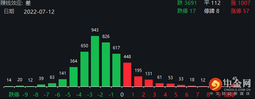 个股方面,昨日市场赚钱效较差,个股跌多涨少,超3600家个股下跌,1007家个股上涨,57家个股涨停。