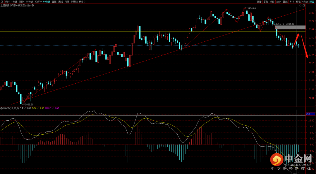 大盘全天维持小幅震荡结构,短期十五分钟已经出现背驰段,注意观察是否能够突破3331,如果无法突破这个位置则缺口大概率无法回补,届时将可能继续向下回落。而下方需要关注是否跌破3262点一旦跌破将可能出现加速下跌走势,从时间周期看下跌目前还未结束,可以耐心等待日线底分的出现。