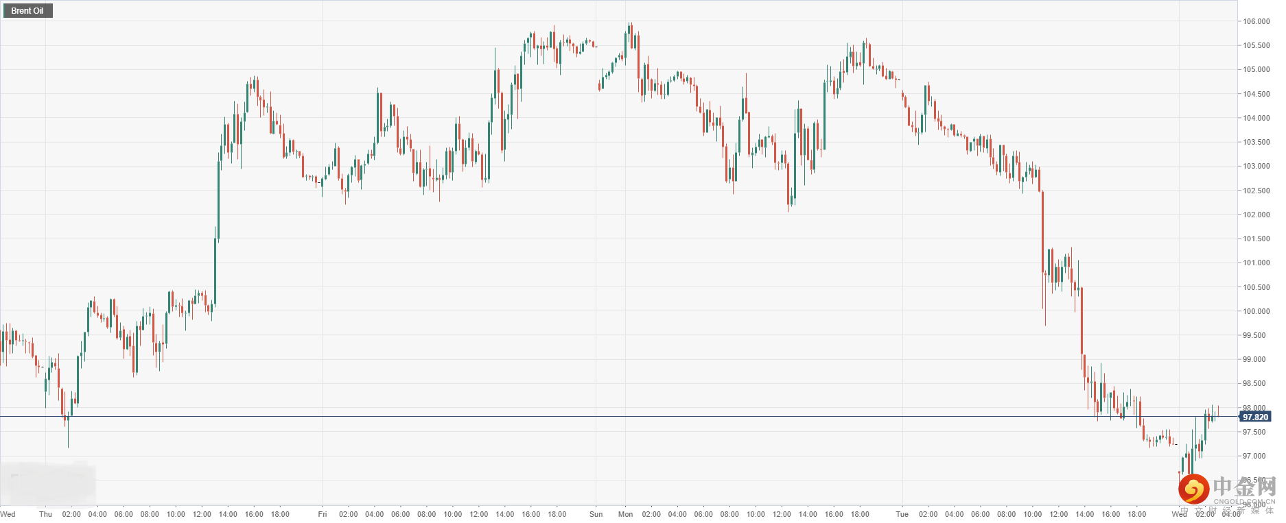 § 原油方面:布伦特原油骤跌至97.82。
